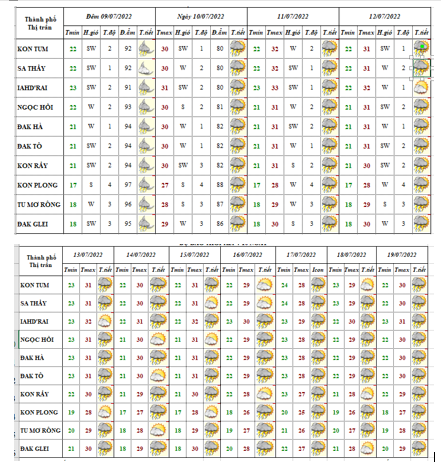 BẢN TIN DỰ BÁO THỜI TIẾT, THỦY VĂN TỈNH KON TUM Đêm 09 ngày 10 tháng 7 năm 2022