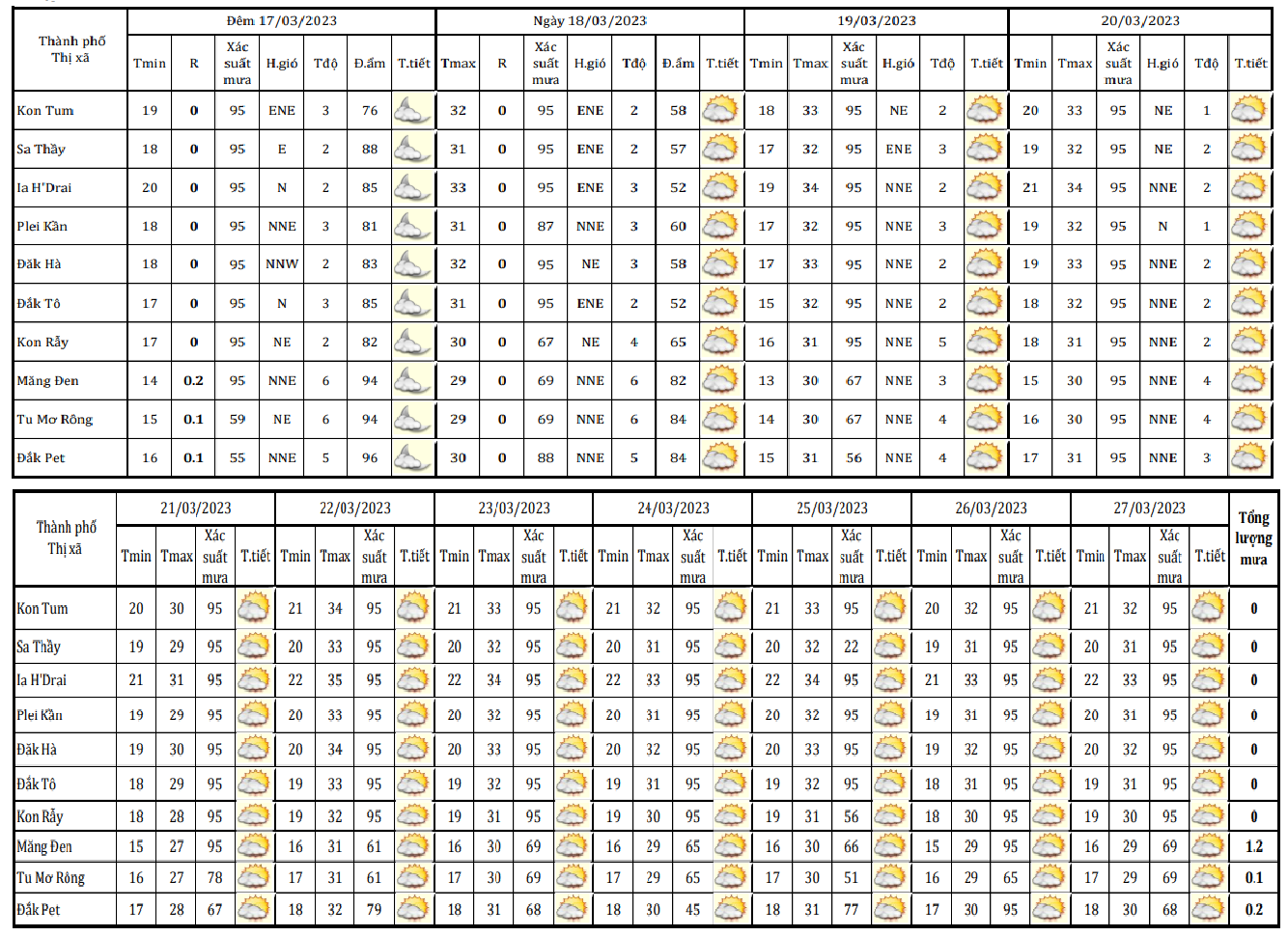 BẢN TIN DỰ BÁO THỜI TIẾT, THỦY VĂN TỈNH KON TUM Đêm 16 ngày 17 tháng 03 năm 2023