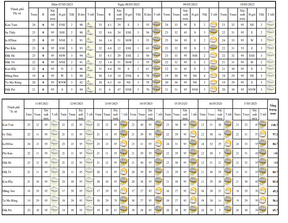 BẢN TIN DỰ BÁO THỜI TIẾT, THỦY VĂN TỈNH KON TUM Đêm 09 ngày 10 tháng 05 năm 2023