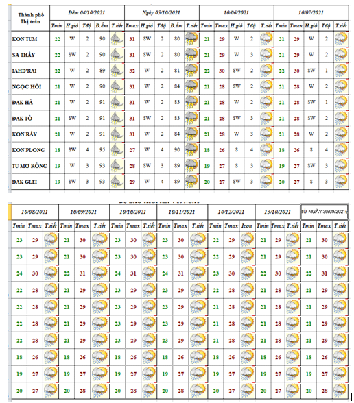 BẢN TIN DỰ BÁO THỜI TIẾT ĐIỂM 10 NGÀY CÁC HUYỆN VÀ TP. KON TUM