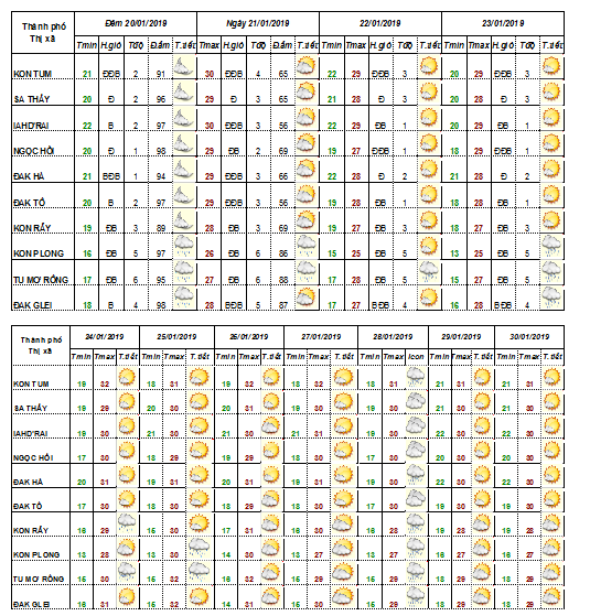 BẢN TIN THỜI TIẾT CÁC HUYỆN VÀ TP KON TUM TRONG 10 NGÀY TỚI