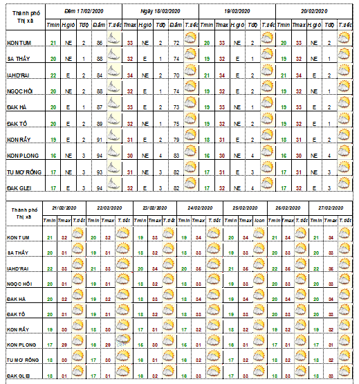 DỰ BÁO THỜI TIẾT TỈNH KON TUM ĐÊM 16 NGÀY 17 THÁNG 02 NĂM 2020