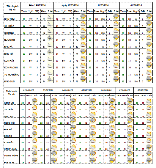 DỰ BÁO THỜI TIẾT TỈNH KON TUM ĐÊM 30 NGÀY 31 THÁNG 5 NĂM 2020