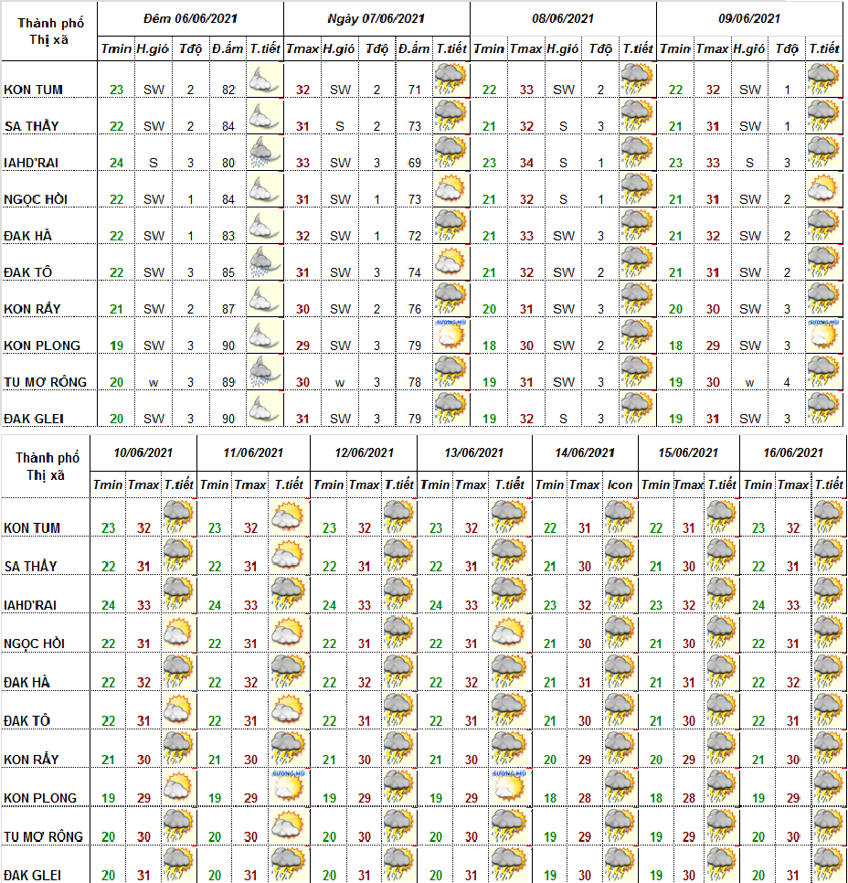 DỰ BÁO THỜI TIẾT TỈNH KON TUM ĐÊM 05 NGÀY 06 THÁNG 6 NĂM 2021