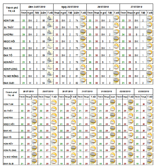 DỰ BÁO THỜI TIẾT TỈNH KON TUM ĐÊM 23 NGÀY 24 THÁNG 7 NĂM 2019