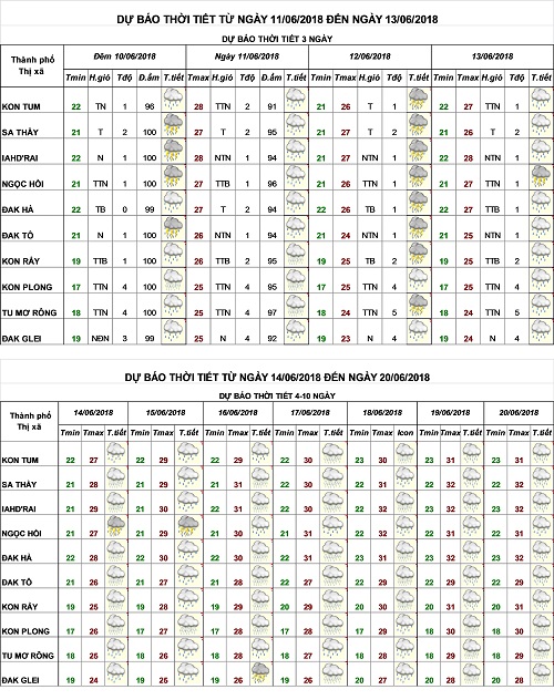 DỰ BÁO KHÍ TƯỢNG THUỶ VĂN TỪ NGÀY 11 ĐẾN NGÀY 20 THÁNG 6 NĂM 2018 CÁC KHU VỰC TRÊN PHẠM VI TỈNH KON TUM