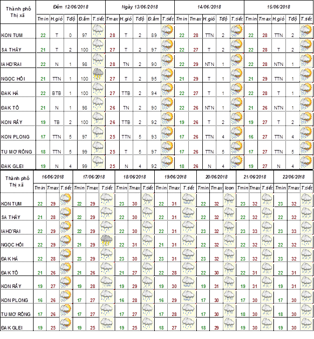 DỰ BÁO KHÍ TƯỢNG THUỶ VĂN TỪ NGÀY 11 ĐẾN NGÀY 20 THÁNG 6 NĂM 2018 CÁC KHU VỰC TRÊN PHẠM VI TỈNH KON TUM