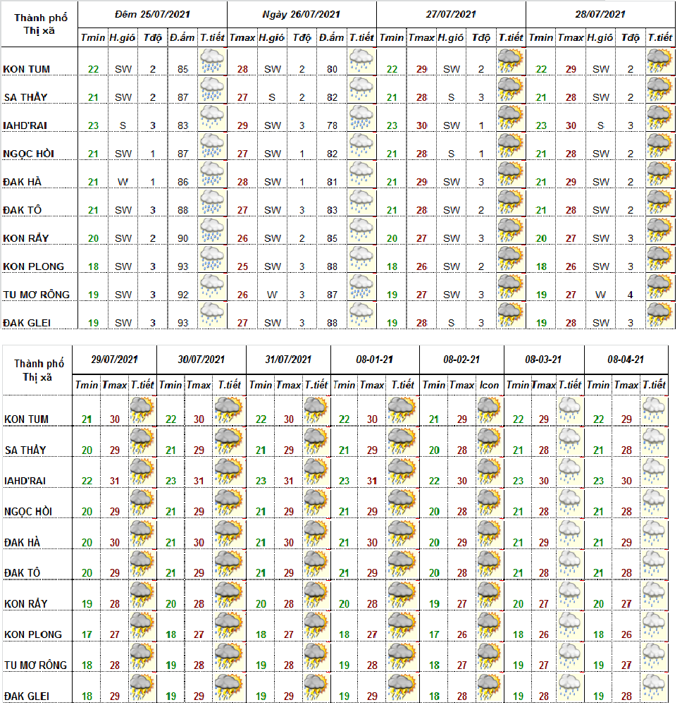 BẢN TIN THỜI TIẾT ĐIỂM 10 NGÀY, CÁC HUYỆN VÀ THÀNH PHỐ