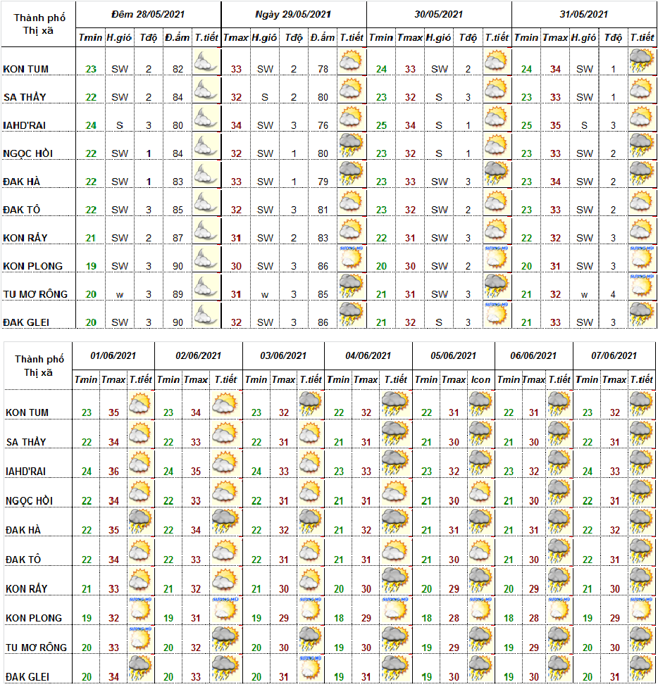 BẢN TIN THỜI TIẾT ĐIỂM 10 NGÀY, CÁC HUYỆN VÀ THÀNH PHỐ