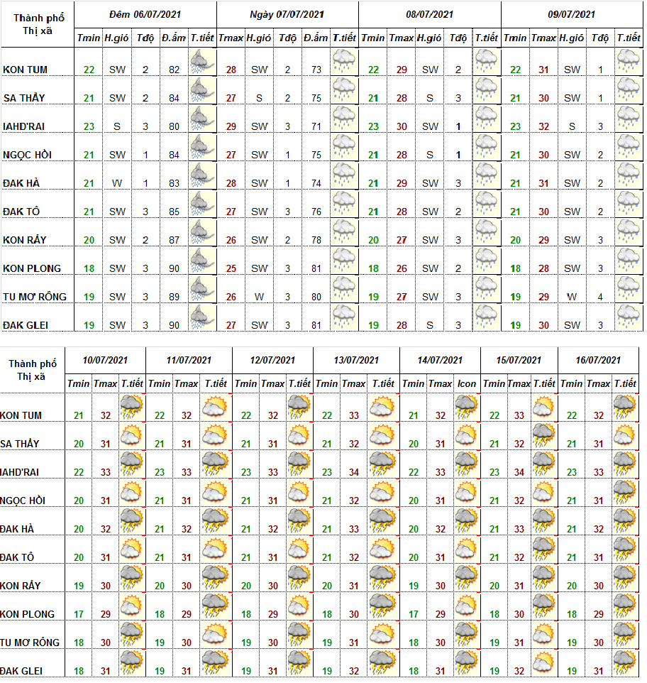 BẢN TIN THỜI TIẾT ĐIỂM 10 NGÀY, CÁC HUYỆN VÀ THÀNH PHỐ