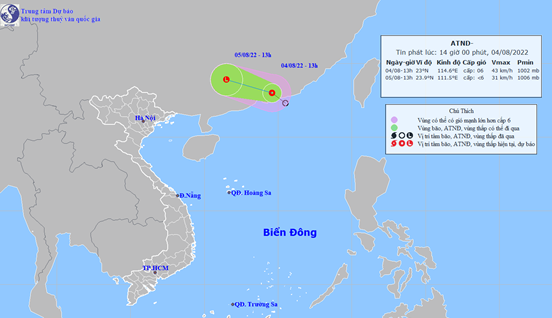 Trưa nay (04/8), áp thấp nhiệt đới đã đi vào khu vực phía Nam tỉnh Quảng Đông (Trung Quốc).