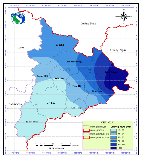 | Ngọc Hồi, Sa Thầy, Ia H’Drai, Đăk Tô, Đăk Hà, Kon Rẫy và TP. Kon Tum | 10 – 30, có nơi trên 30 | |