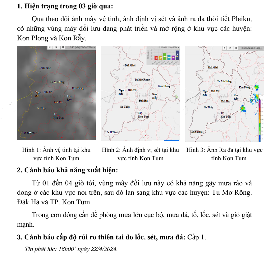 TIN CẢNH BÁO DÔNG, TỐ, LỐC, SÉT, MƯA ĐÁ VÀ MƯA LỚN CỤC BỘ TRÊN KHU VỰC TỈNH KON TUM