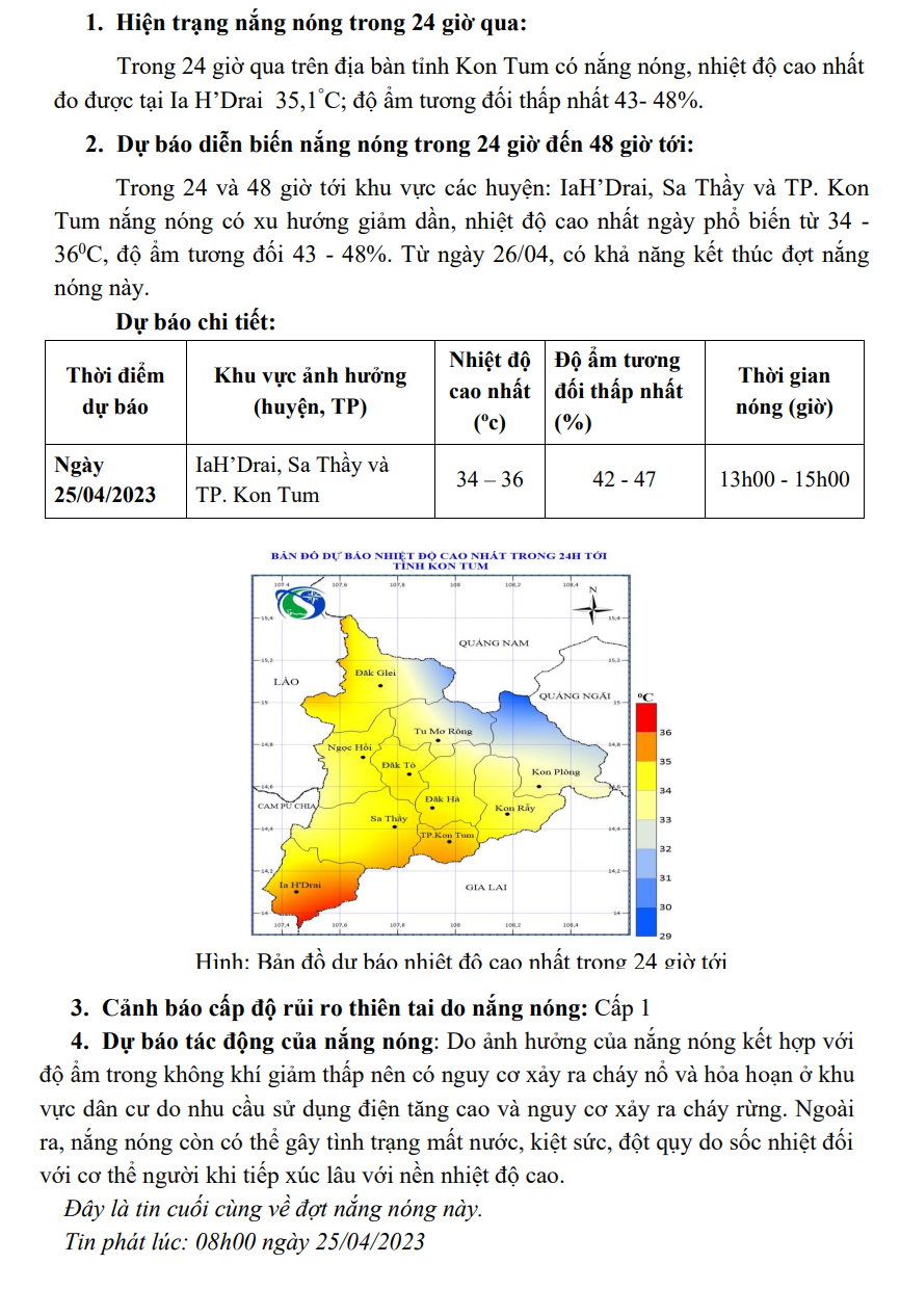 TIN DỰ BÁO NẮNG NÓNG TRÊN ĐỊA BÀN TỈNH KON TUM